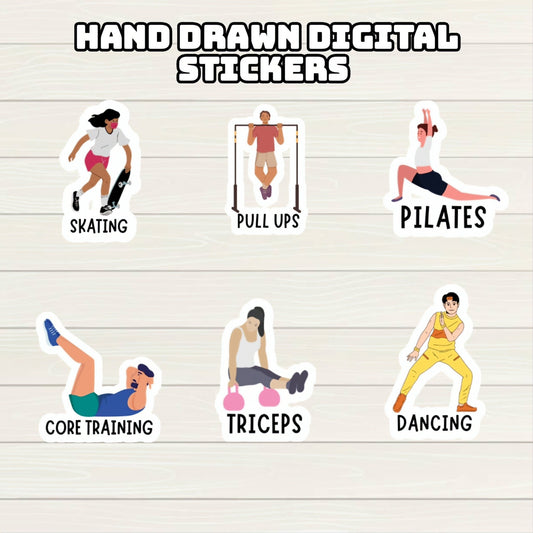 Fitness Digital Stickers - 300+ Stickers, Goodnotes file, Pre-Cropped Individuals, PNGs Digital Stickers, Pre-cropped iPad Workout Stickers