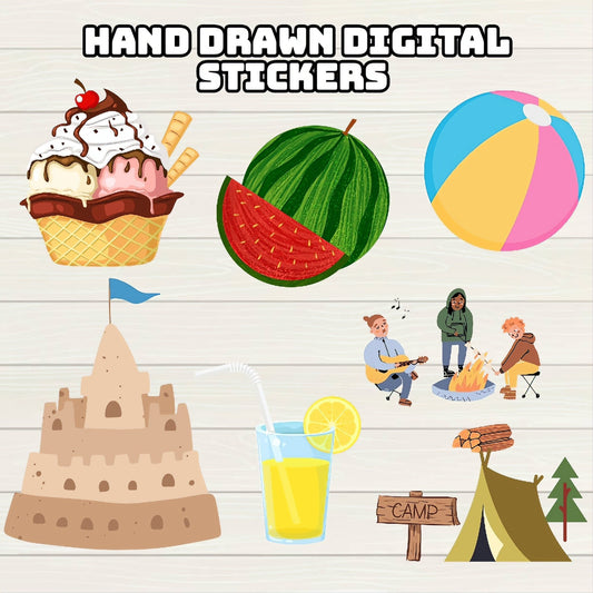 Summer Digital Stickers - 260+ Stickers, Goodnotes file, Pre-Cropped Individuals, PNGs Digital Stickers, Pre-cropped iPad Stickers