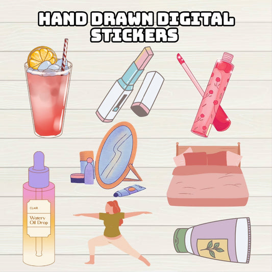 Self Care Digital Stickers - 200+ Stickers, Goodnotes file, Pre-Cropped Individuals, PNGs Digital Stickers, Pre-cropped iPad Stickers